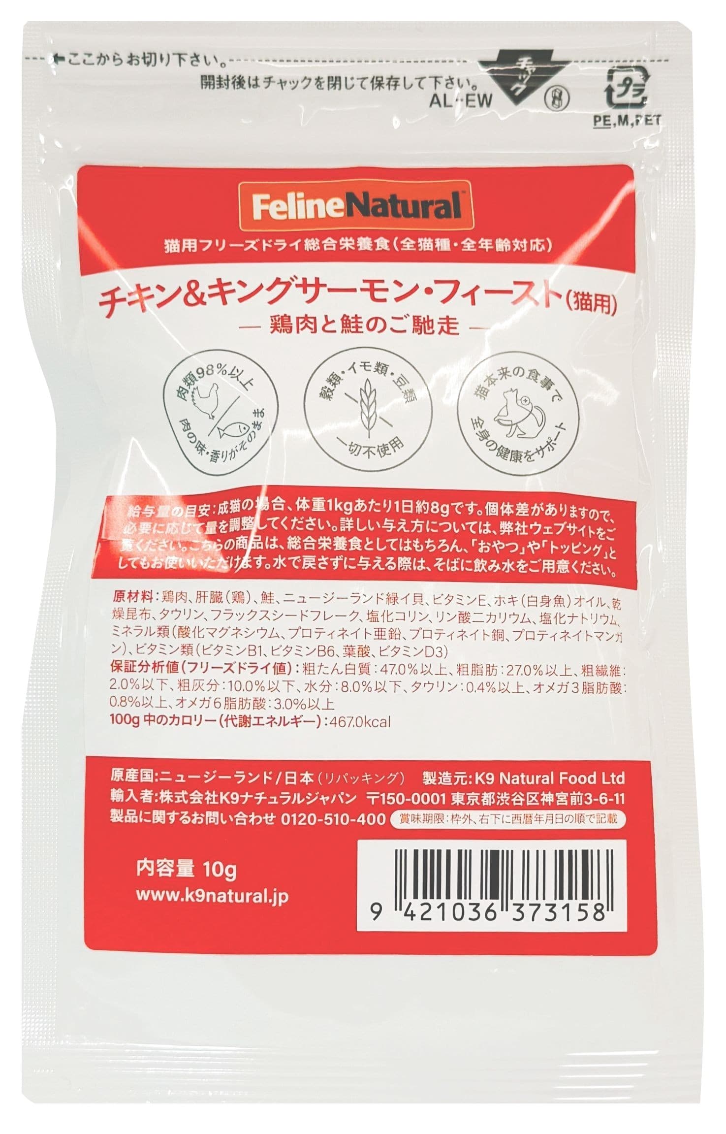 Feline Natural フリーズドライ チキン&キングサーモン・フィースト 10gカテゴリに戻る