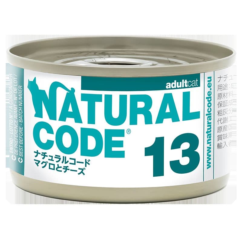 ナチュラルコードの世界はペットと暮らす喜びと彩り豊かな食生活でできています。香料・着色料・保存料不使用で、天然素材の持つ香り・食感などの特性を最大限に引き出します。/マグロとチーズでタンパク質、オメガ3脂肪酸、カルシウムを補給し、消化しやすい少量の米を配合したフレークタイプのレシピです。