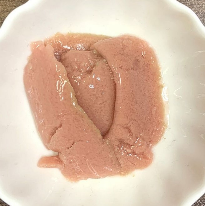 | 成分値 | 粗たん白:7.1%以上、粗脂肪:0.4%以上、粗繊維:0.1%未満、水分:92.0%以下、粗灰分:0.2%以下、タウリン:7.2mg/100g、リン:0.03%、ナトリウム:0.008%、マグネシウム:0.005% |