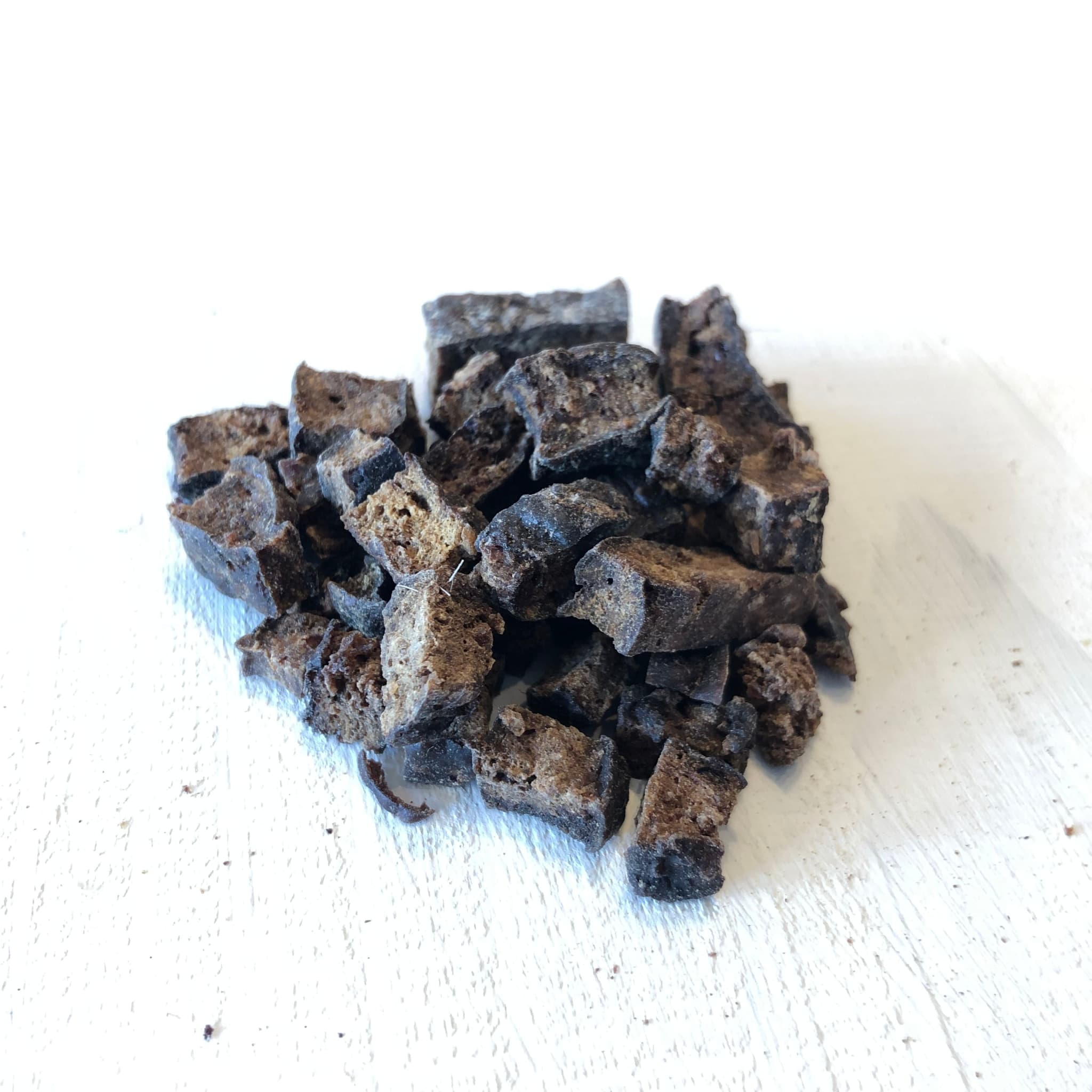 食べやすい大きさ!鹿肉をミンチにしてから小さくカットし、乾燥しました。小さなワンちゃんでも食べやすいです。添加物等一切不使用の無添加です。