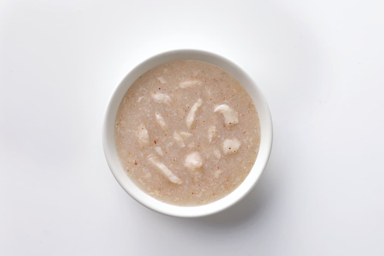 | 原材料 | 鶏むね肉(南九州産)、チキンスープ、こんにゃく粉、かつお節粉末、ハスの実エキス、ハトムギ末 |