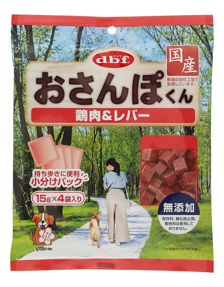鶏肉と鶏レバーをベースにしたひとくちサイズの犬用スナックです。おさんぽ時に食べ切れる小分けパックのため、携帯に便利です。